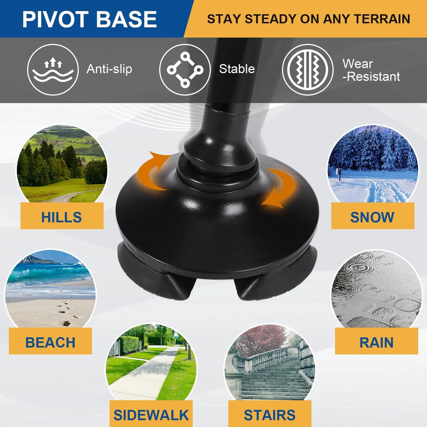 Excellent design. The pivot base adds great stability on uneven ground.