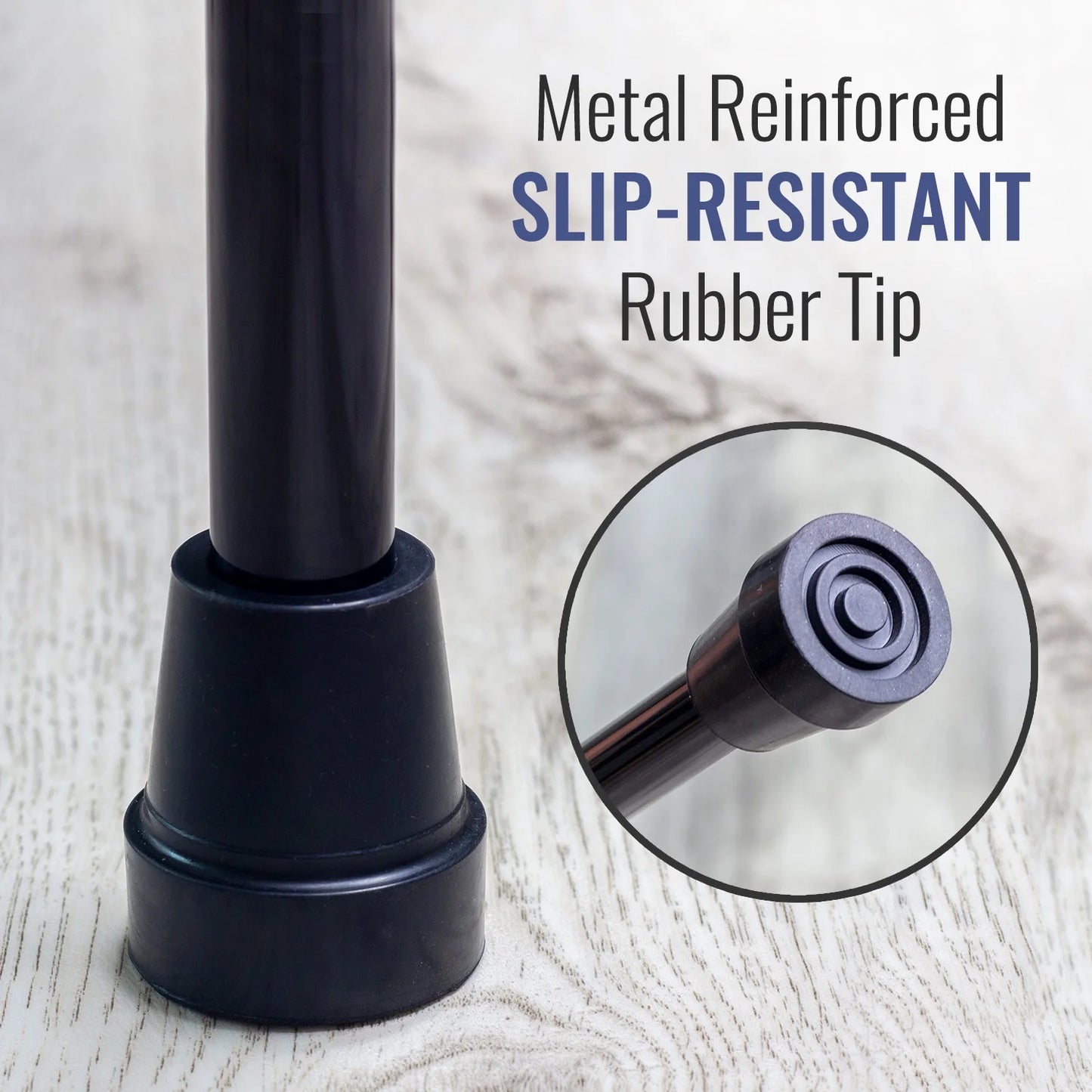 This stylish walking cane offers lightweight support with a bold leopard print design. Built from durable aluminum, it adjusts from 30" to 39" to suit a wide range of users. The soft foam offset handle reduces hand fatigue, while the wrist strap adds security during use. Slip-resistant rubber tip ensures traction across indoor and outdoor surfaces. FSA/HSA eligible and supports up to 250 lbs—ideal for seniors, caregivers, and anyone seeking mobility with flair.